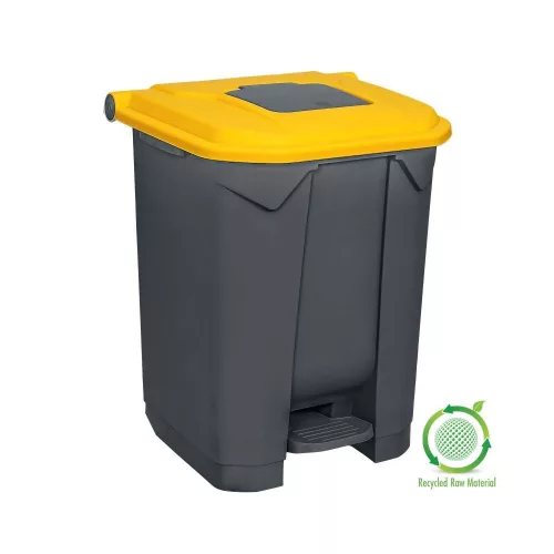 Szelektív hulladékgyűjtő konténer, ECO műanyag, pedálos, antracit/sárga 50L